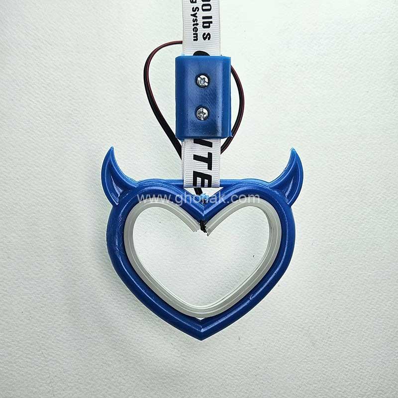 آویز را به بخش دلخواه (مثلاً زیر سپر، داخل کابین یا آینه وسط) متصل کنید، سپس منبع تغذیه را فعال نمایید. نور LED بهصورت ملایم روشن شده و جلوهای خاص به خودرو میدهد.