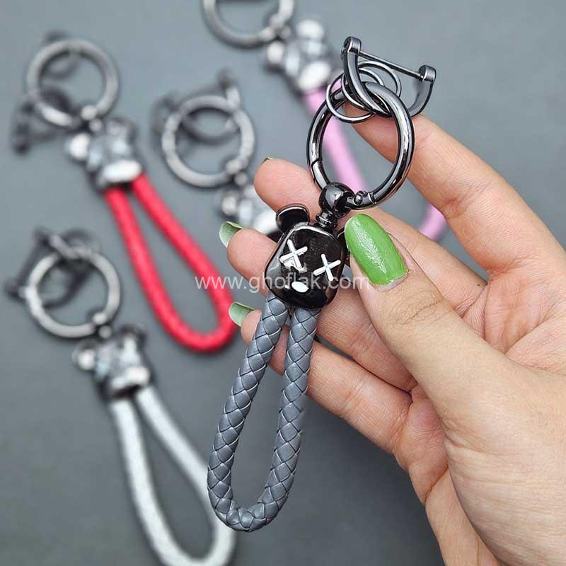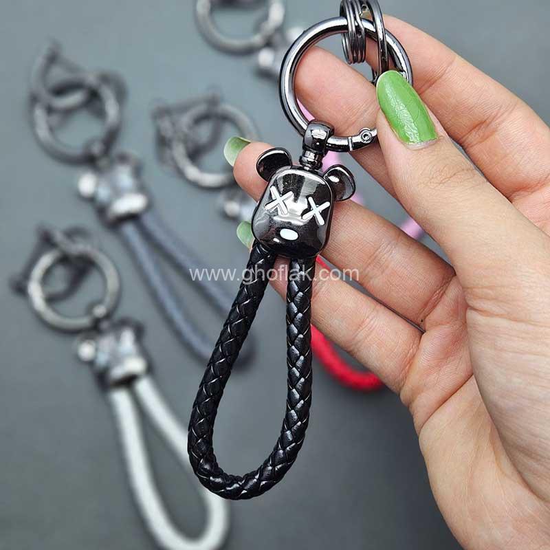 این آویز دارای بند چرم زنجیری بلند می باشد که می توانید این آویز را برای کلید یا کلکسیون خود سفارش دهید.