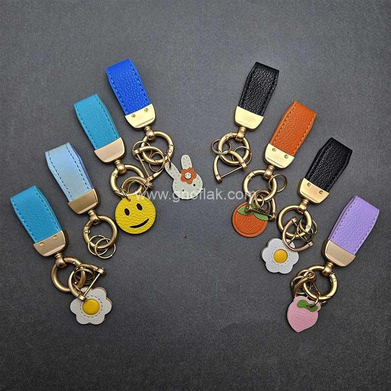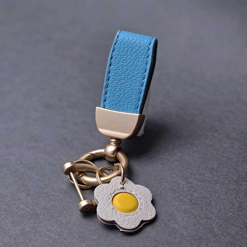 با آویز چرم کوتاه رنگی گلدار می‌توانید کلیدها و ریموت خود را با استایل خاص‌تر و جذاب‌تری همراه کنید.