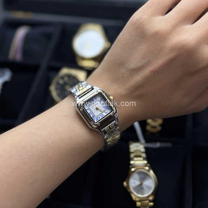 اگه دلت یه ساعت زنونهی شیک و ظریف میخواد که هر جا بری حسابی بدرخشه، این مدل استیل کارتیر دقیقاً همونه! بدنهاش از استیل ضدزنگ باکیفیت بالا ساخته شده و توی رنگهای متنوع مثل نقرهای، طلایی، رزگلد و ترکیبی ارائه میشه. صفحهی ساده ولی خاصش با لوگوی خوشخط Cartier حس خاصی از شیکپوشی رو منتقل میکنه.