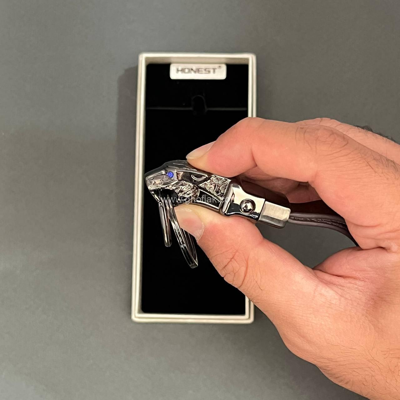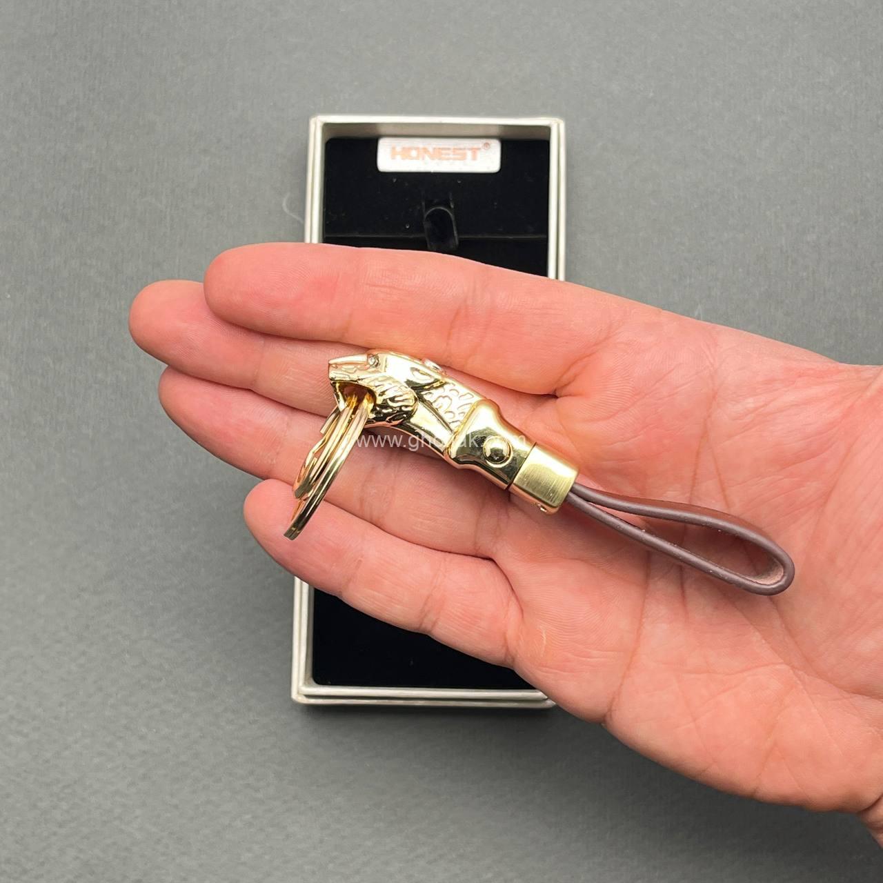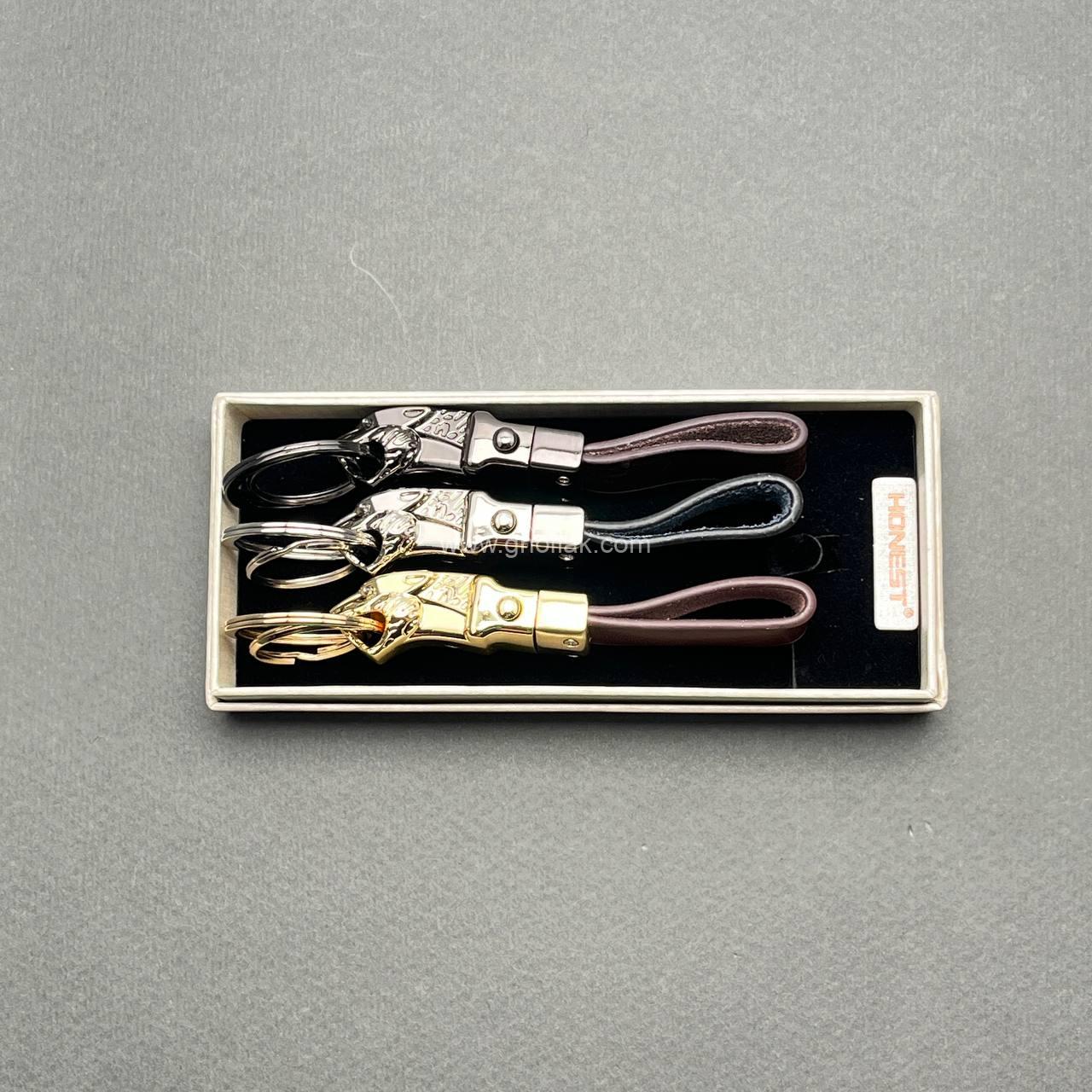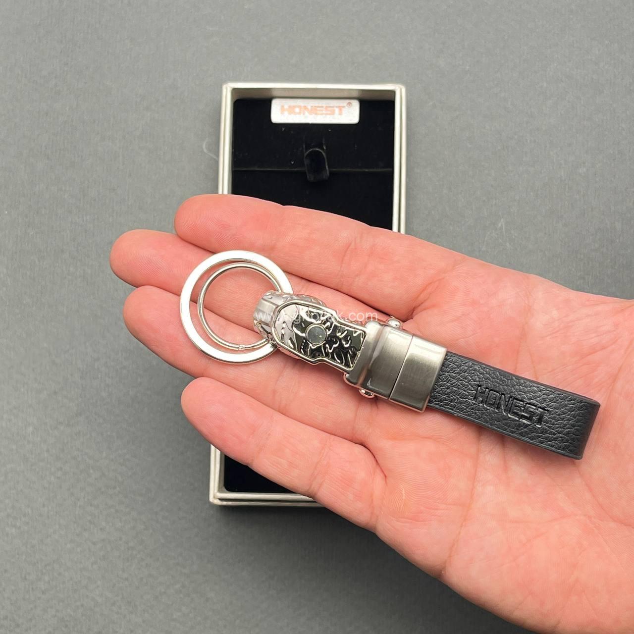 این جا کلیدی زیبا از برند معروف Honest می باشد که هم بر روی بدنه برنجی و هم بر روی بند پهن چرمی آن این برند معروف حک شده است.