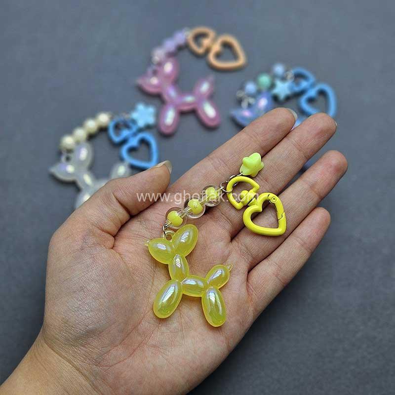 کنار هر سگ بادکنکی یک سری مهره‌، یک گل یا ستاره فانتزی و یک قفل قلبی‌شکل قرار گرفته که ظاهر آویز رو کامل‌تر و جذاب‌تر کرده. این محصول در ۴ رنگ زیبا و پرطرفدار عرضه می‌شه و کاملاً مناسبه برای کسایی که عاشق اکسسوری‌های خاص، بامزه و متفاوتن.