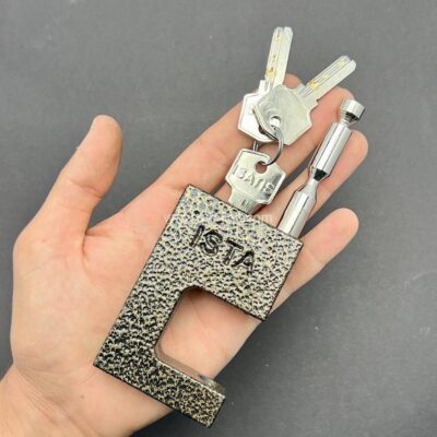 قفل کتابی بیضی سایز 95 کیاکو یکی از امن‌ترین و قابل‌اعتمادترین قفل‌های بازار برای محافظت از موتور، درب مغازه، انبار، صندوق، درب‌های آهنی و تجهیزات صنعتی است. این مدل با کلید هیدرودیسکی ضد اسید و بدنه‌ای کاملاً توپر، یکپارچه و فولاد سختکاری‌شده طراحی شده تا بالاترین سطح امنیت را ارائه دهد و در برابر هرگونه خرابکاری، برش، ضربه و اسید مقاومت فوق‌العاده‌ای داشته باشد.