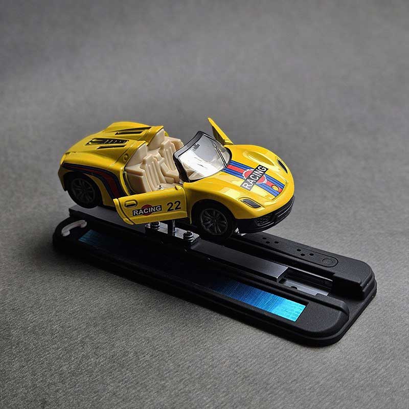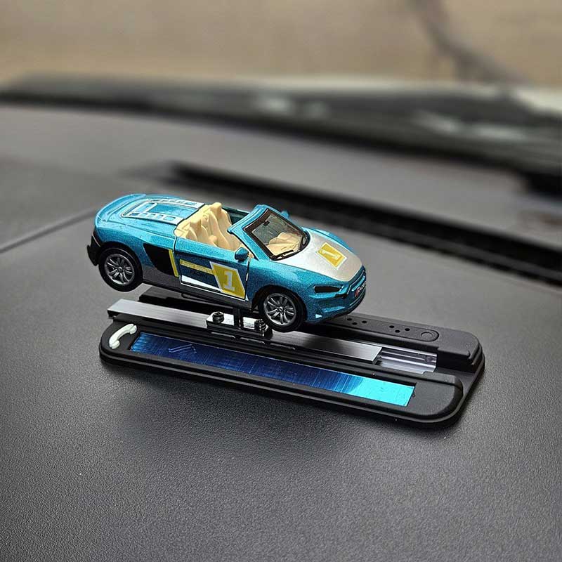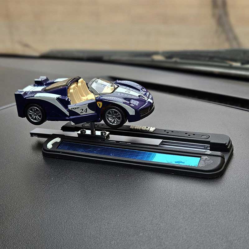 طراحی هوشمندانه این محصول باعث شده ماکت روی یک ریل ۱۰ سانتیمتری حرکت کند؛ یعنی هنگام پیچیدن یا تغییر مسیر خودرو، ماکت بهصورت طبیعی عقب و جلو میشود و جلوهای زنده و جذاب به فضای داخلی ماشین میدهد. این ویژگی باعث میشود داشبورد شما از حالت ساده و یکنواخت خارج شده و حس لوکستری به کابین خودرو اضافه شود.