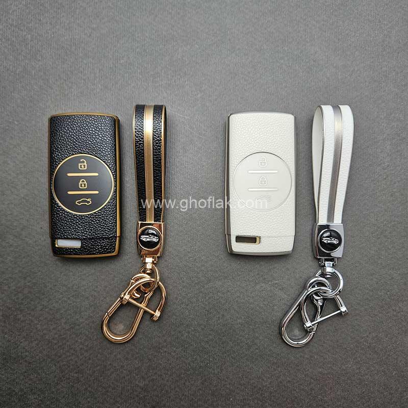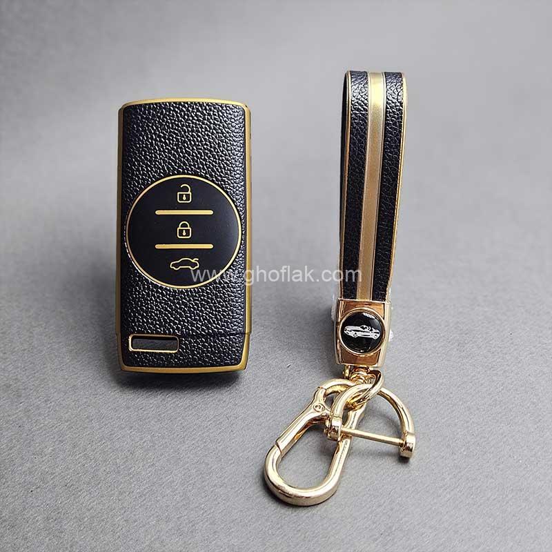 اگر میخواهید ریموت ماشینتان همیشه سالم، تمیز و خوشظاهر بماند، این کاور بهترین گزینه است. ظاهر چرممانند و نوارهای طلایی/نقرهای، حس لوکس بودن را به ریموت میبخشد و بند ست نیز کار را کامل میکند.