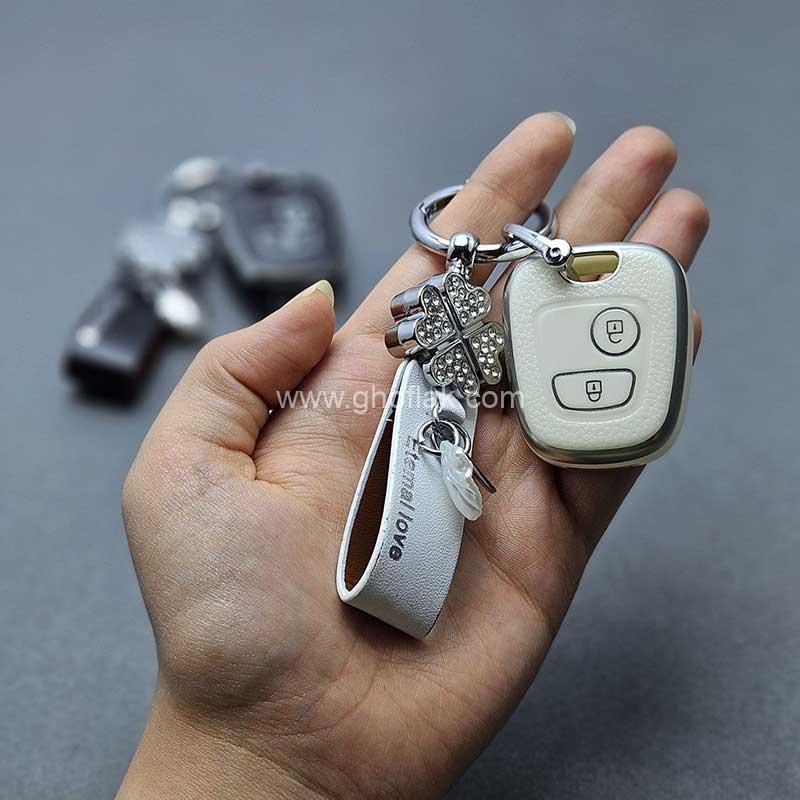بند چرم نگین‌دار همراه محصول هم حکم یک اکسسوری لاکچری رو داره. نگین‌های براق روی بند، جلوه‌ای درخشان و زنانه ایجاد می‌کنن و باعث می‌شن ریموت دقیقاً مثل یک آیتم زینتی خاص دیده بشه. این مدل مخصوص خانم‌هایی طراحی شده که دوست دارن ریموت ماشینشون، بخشی از استایل‌شون باشه.