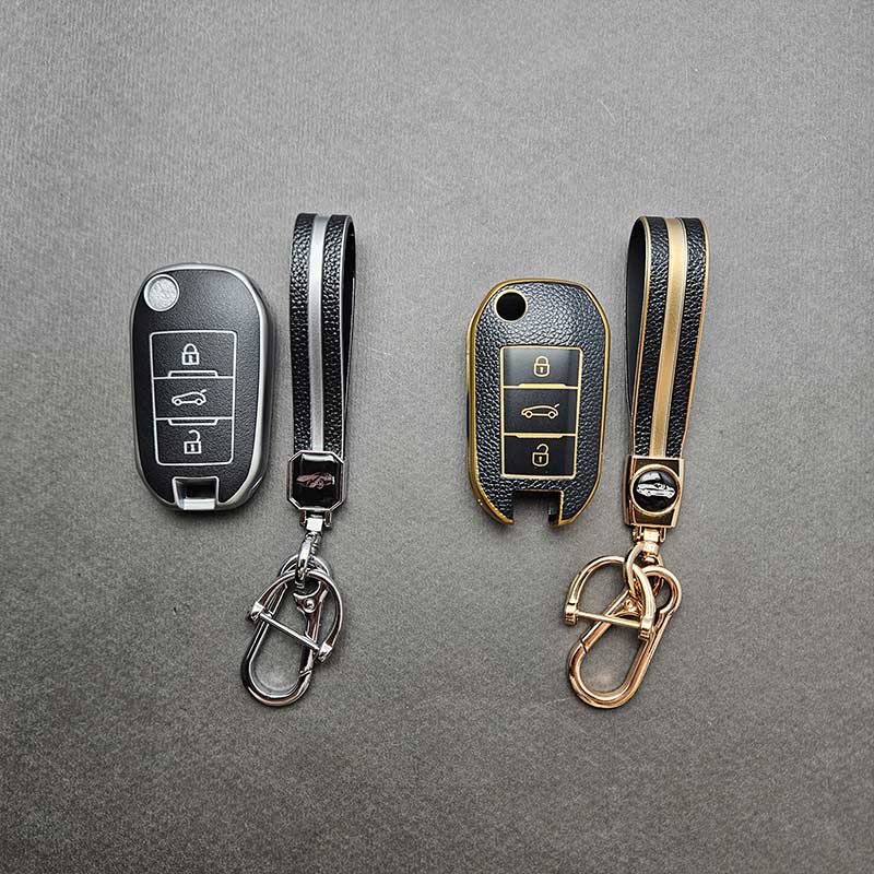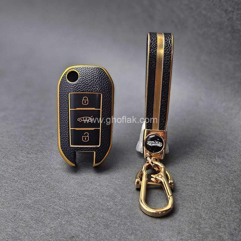 کاور ریموت پژو 2008 تاشو طرح چرم با بند ست