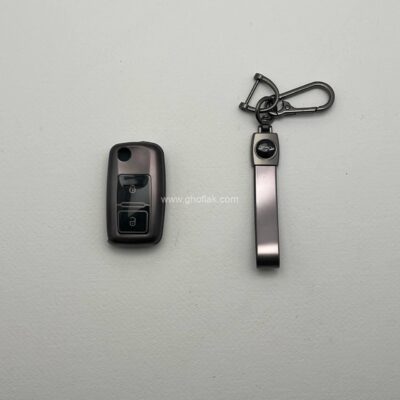کاور ریموت پژو 405 و پارس دو دکمه کلید تاشو طرح متالیک با بند ست