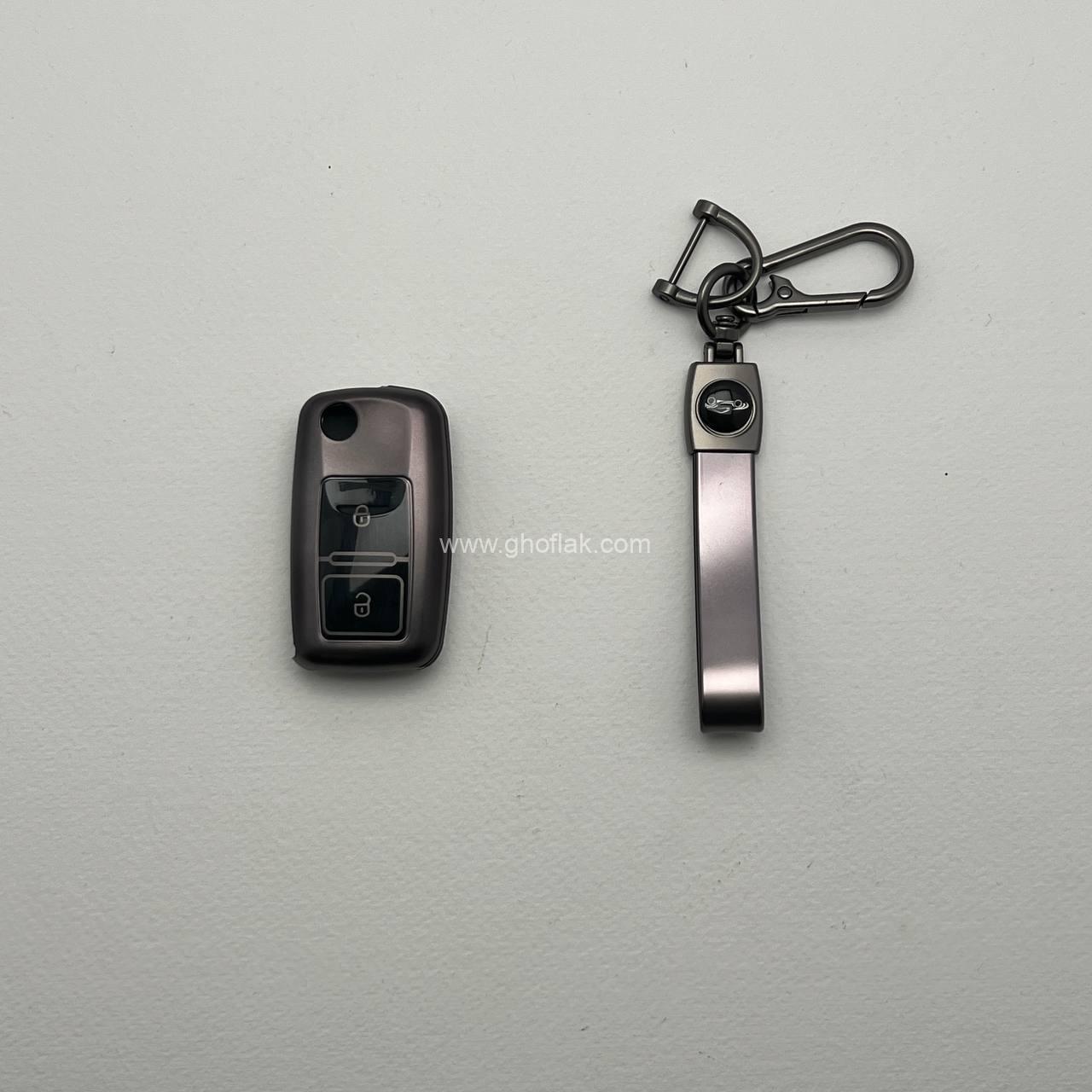 کاور ریموت 405 دو دکمه کلید تاشو طرح متالیک با بند ست