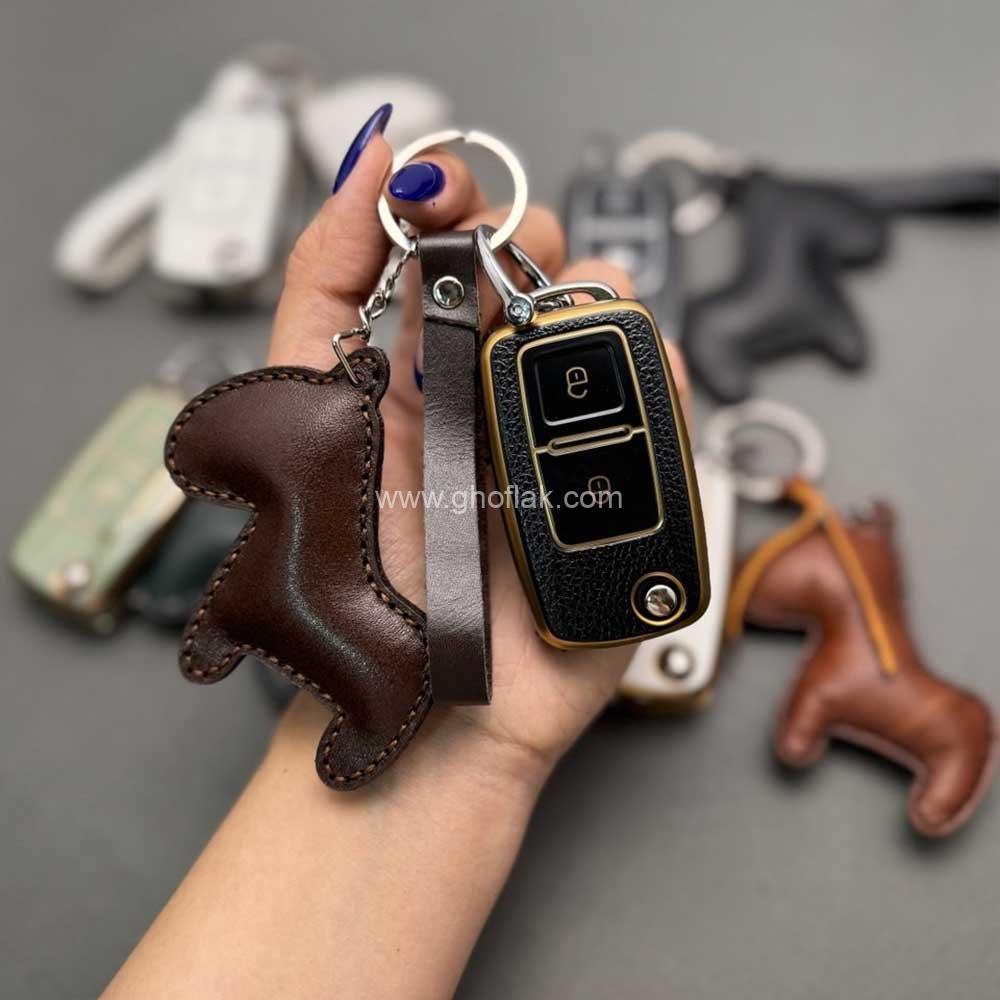 کاور ریموت پژو 405 و پارس دو دکمه ست فانتزی با چرم طبیعی